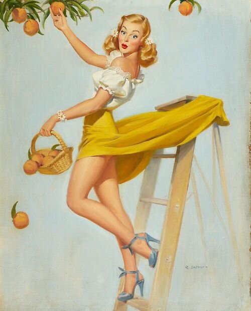 Drawing from a spread, pull out and hang on wall. There was also a picture of such a girl on the plane that dropped the bomb on Hiroshima. Nose art - artwork on airplanes, all sorts of shark teeth, pin-ups were also used a lot.